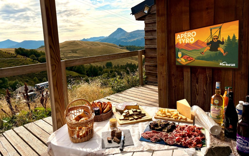 Prenez de la hauteur pour goûter au terroir, à 1400 m d’altitude, vos papilles apprécieront les saveurs de nos montagnes et vos yeux le panorama sur le Volcan du Cantal … avant de vous élancer dans le vide pour effectuer la descente de 1200 m en tyrolienne à 80 km/h.